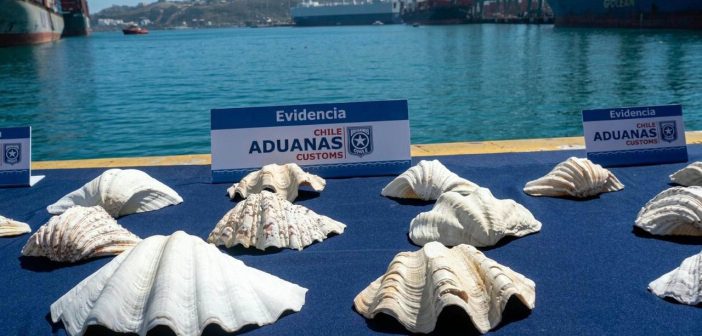Fiscalizadores incautaron más de 20 ejemplares y productos derivados de fauna exótica, entre ellos almejas gigantes, caracoles y pieles en contenedor declarado como menaje de casa.