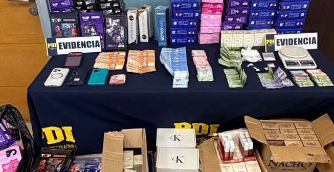 El trabajo de análisis criminal efectuado por la PDI, en coordinación con el Ministerio Público, permitió gestionar las órdenes correspondientes para 10 inmuebles de las comunas de Cartagena y San Antonio, donde se logró la incautación de 7,62 gramos de Ketamina, 53,16 gramos de Clorhidrato de Cocaína, más de un millón 300 mil pesos en dinero en efectivo, así como también, dos licencias de conducir falsificadas, 10 teléfonos celulares y diversos artículos asociados a las sustracción de carga desde contendores, de marcas como TOP, Adidas, Under Armour, avaluados en 10 millones de pesos.